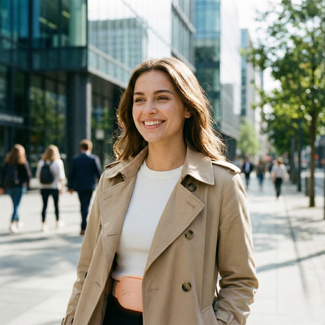 Portable and discreet, it fits perfectly to your abdomen or lower back for optimal comfort, wherever you are.